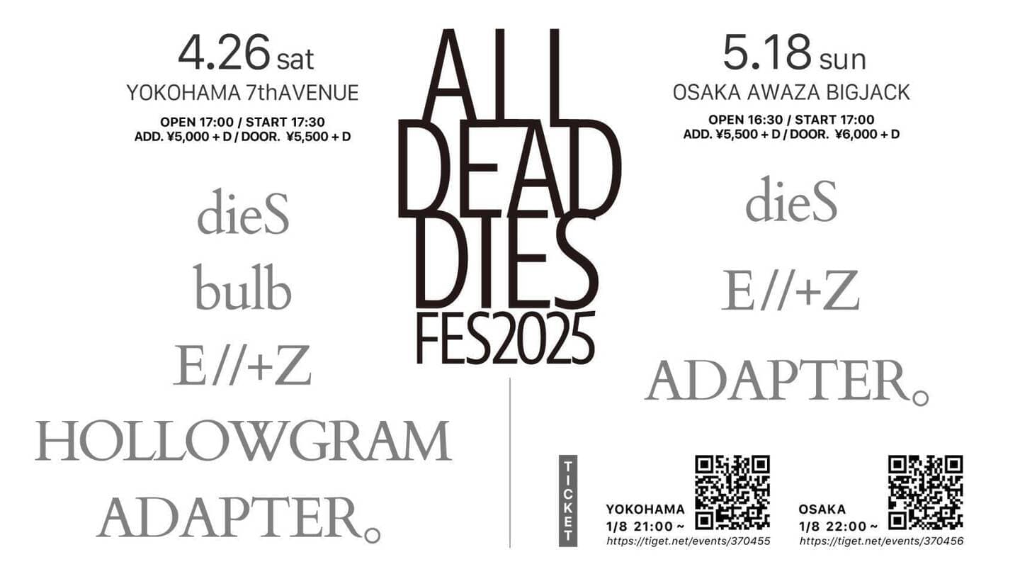 Ticket : adv. ¥6,000-(+1d) / door.¥6,500- (+1d)