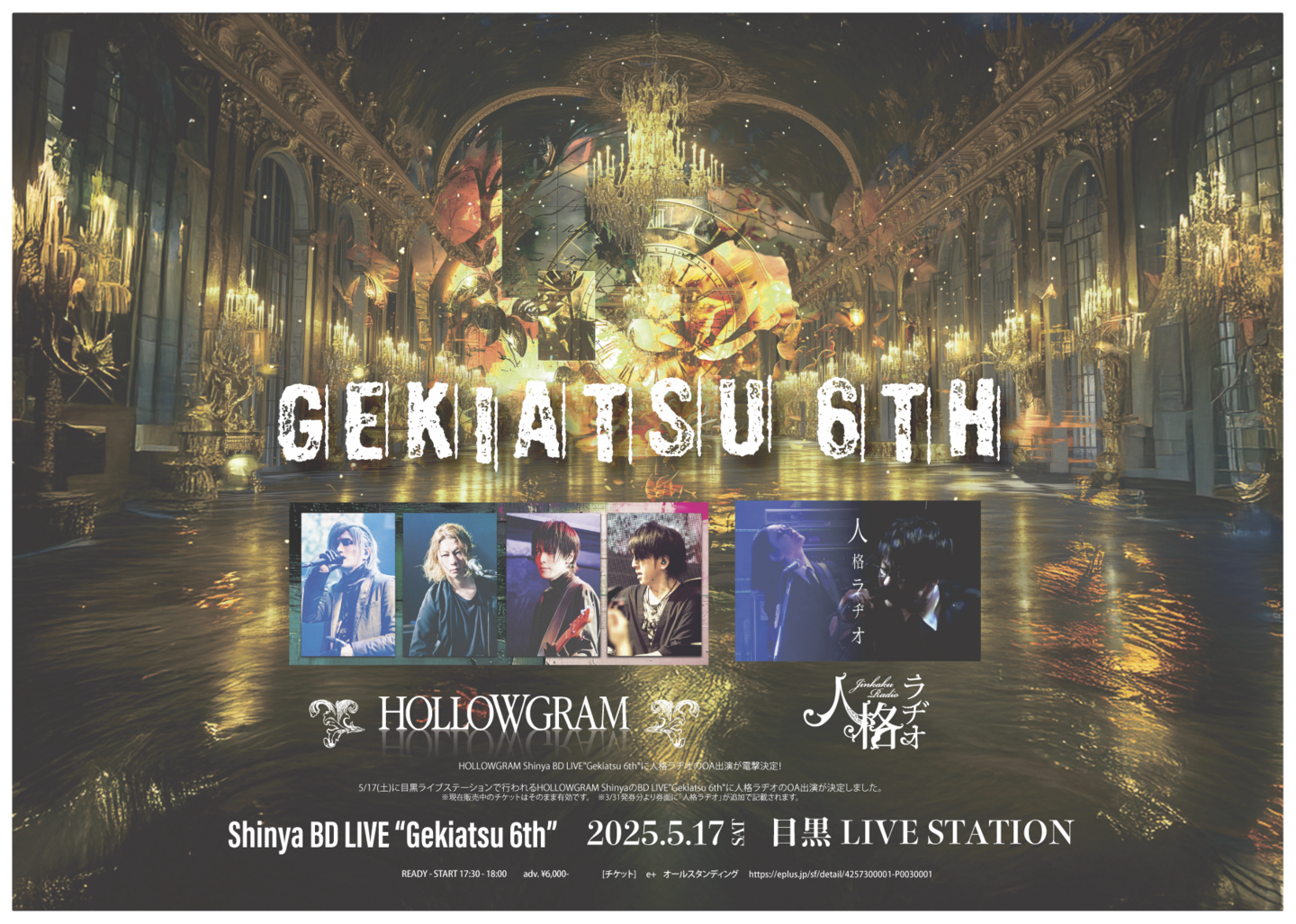5/17(土)に目黒ライブステーションで行われるHOLLOWGRAM ShinyaのBD LIVE"Gekiatsu 6th"に人格ラヂオのOA出演が決定しました。